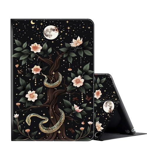 for Fire HD 10 Case 2021,Fire HD 10 Plus Tablet Case (11th Generation,2021 Version),360 Degree Rotating Swivel Stand Cover for Amazon Kindle Fire HD 10 11th Gen-Butterfly Flowers & Gold Moon