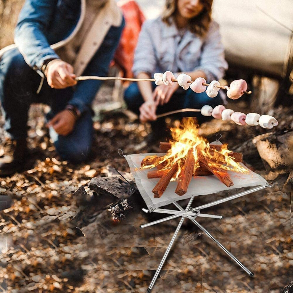 Portable Fire Pit and Folding BBQ Grill with Stainless Steel Mesh for Camping and Bonfire Parties