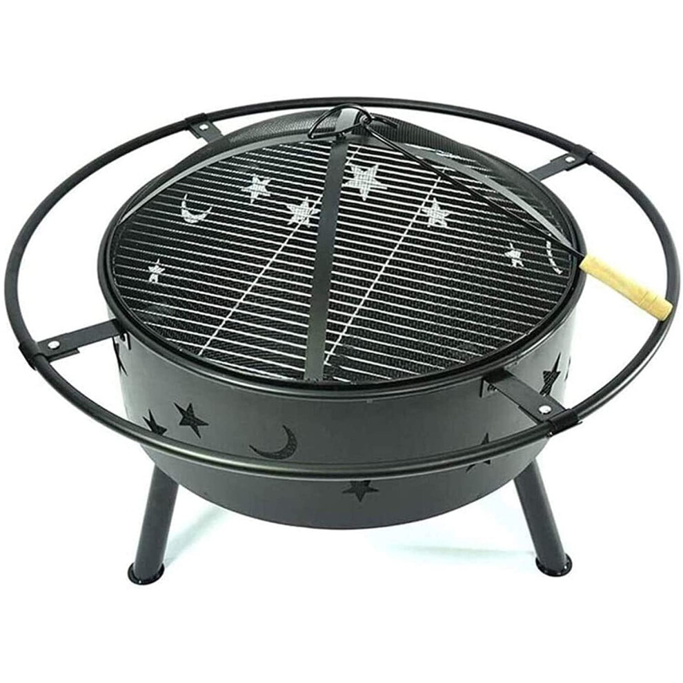 Outdoor Fire Pit and BBQ Grill, Durable Iron Construction with Mesh Cover and Poker for Patio Camping