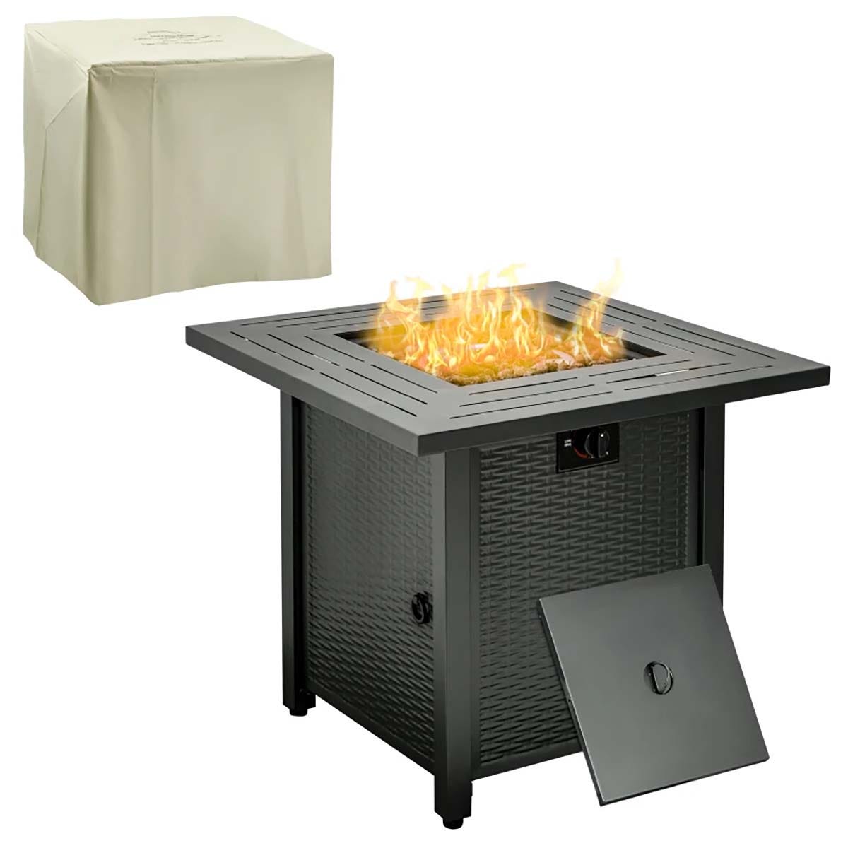 Outdoor Propane Gas Fire Pit Table with Rain Cover, Black