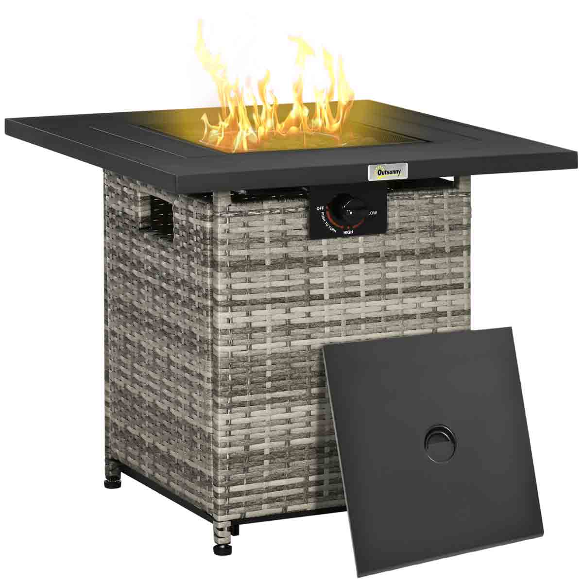 Outsunny Gas Fire Pit Table w/ Rain Cover, Windscreen & Lava Stone, 50,000 BTU, Grey