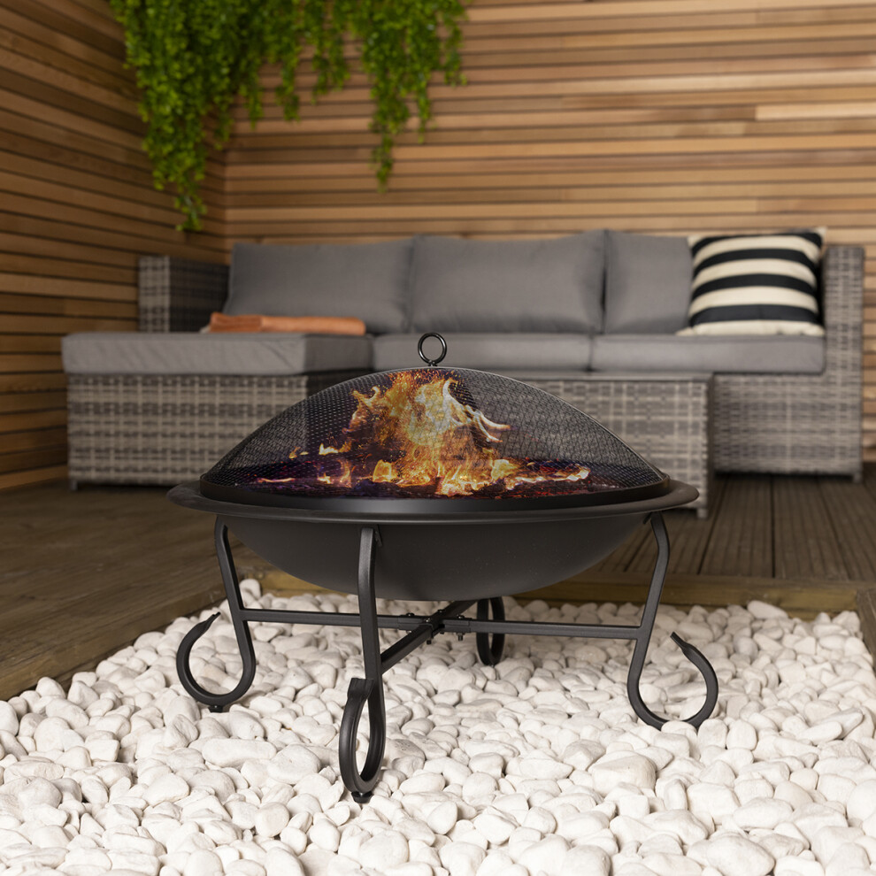 60cm Garden Fire Pit Bowl/ BBQ Grill and Mesh Lid