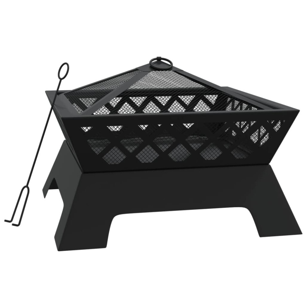 Steel Fire Pit Bowl 22"x22"x19.3" Outdoor Wood Burning Grill for Patio Backyard Garden Camping Picnic 2-in-1 with Poker