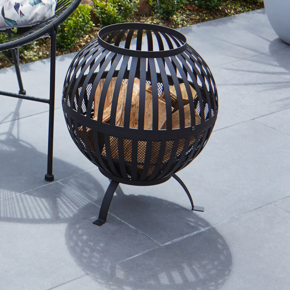 Black Ball Metal Fire Pit Log Burner Bowl Outdoor Heater OH218014