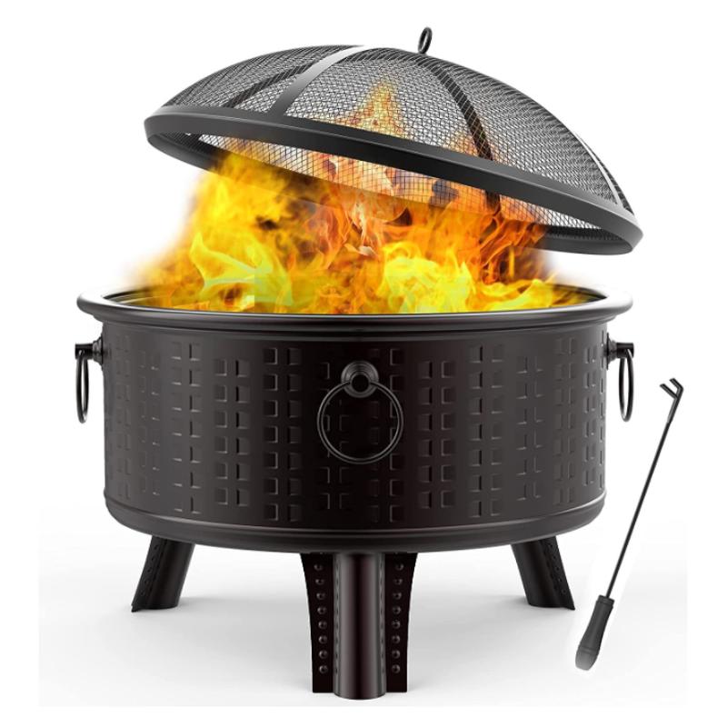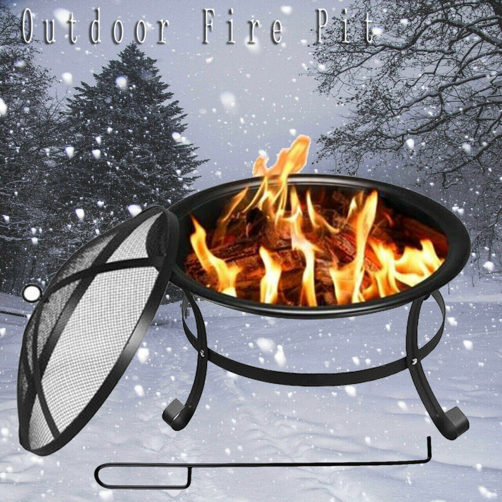 Outdoor Fire Pit Firepit Bowl with Grill Spark Mesh and Fire Poker