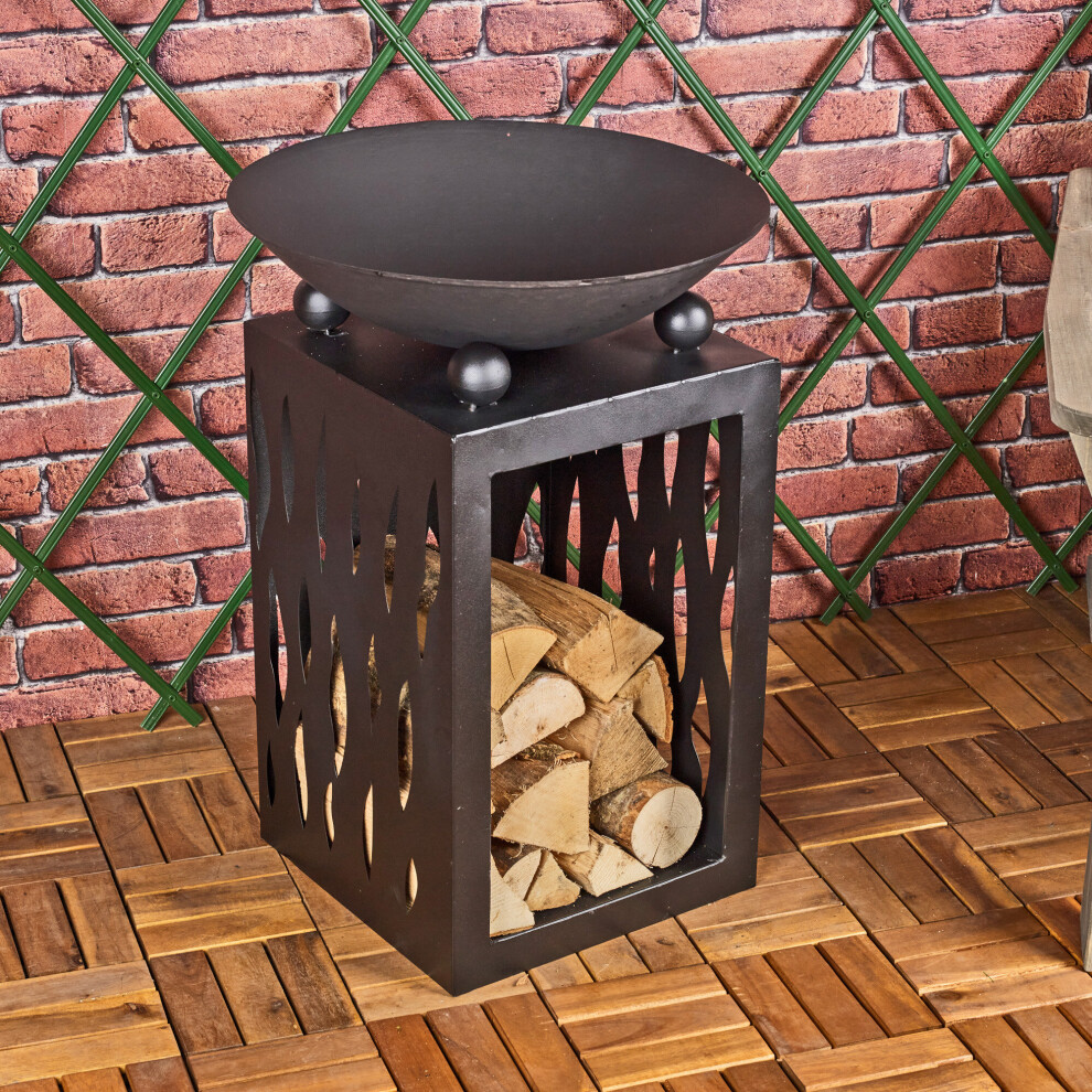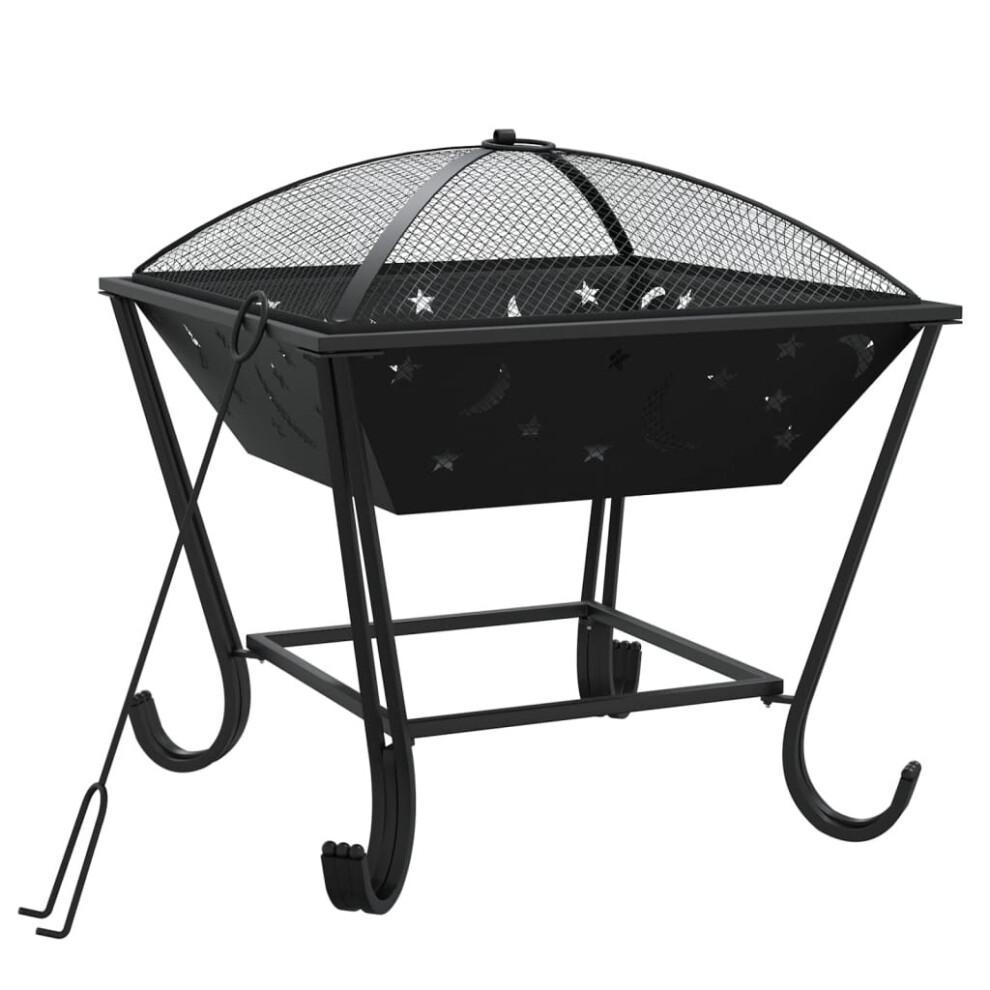 65cm Matt Black Square Steel Fire Pit Bowl Outdoor Garden Heater With Storage