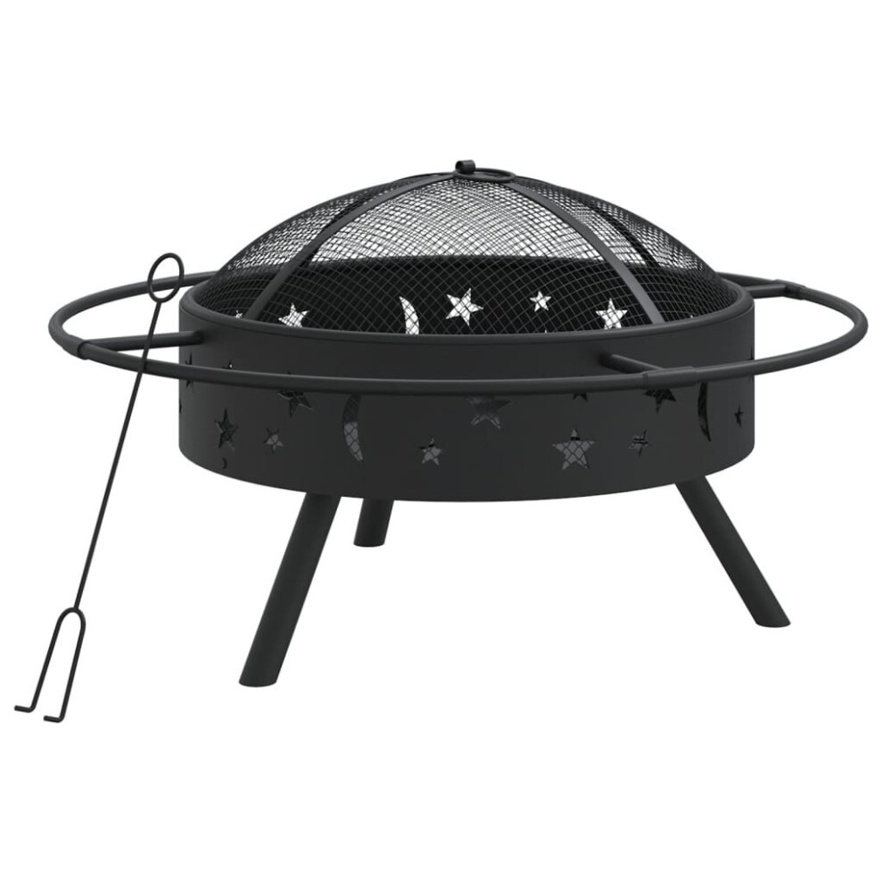 vidaXL Fire Pit Fire Bowl Outdoor Fireplace Patio Heater with Poker XXL Steel