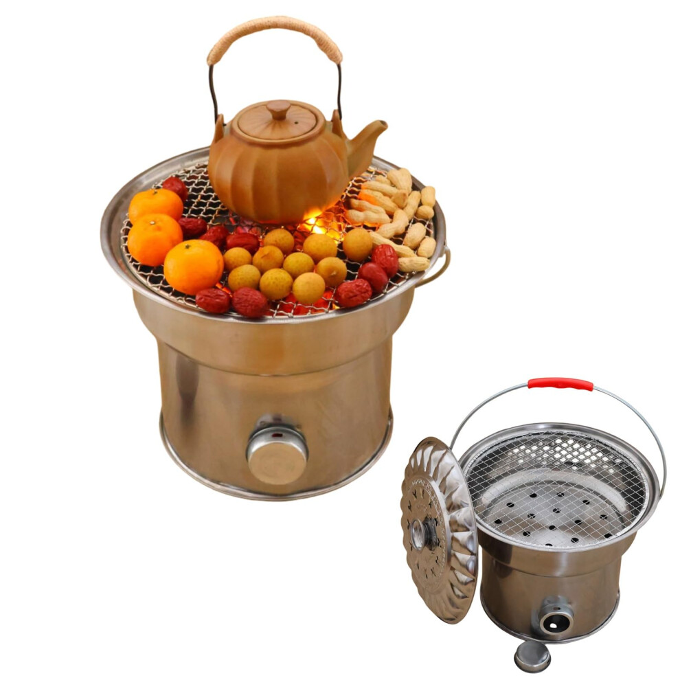 Portable Round Fire Pit Bowl with Lid - Outdoor Garden Heater & BBQ