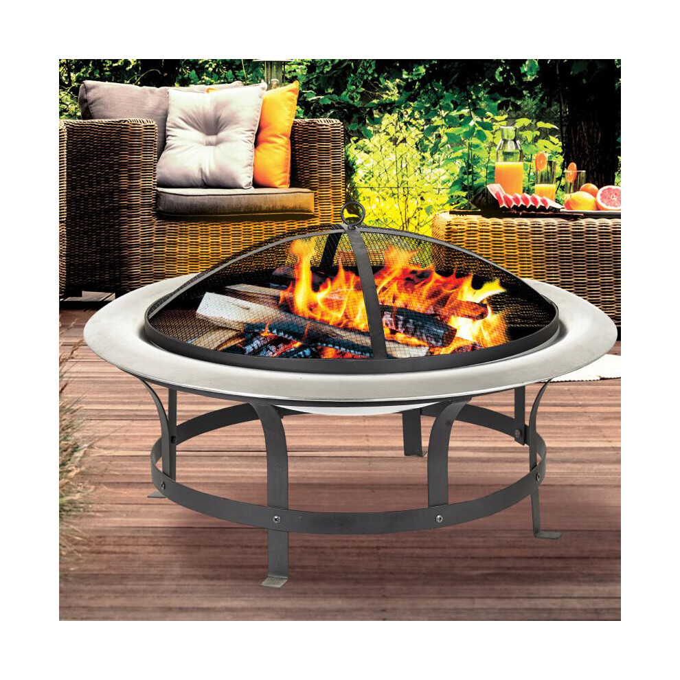 Silver Round Stainles Steel Fire Pit Bowl BBQ Camping Barbecue , Best