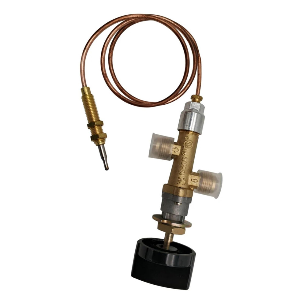 Main Control Valve with Pilot Port for Propane Fire Pit, Gas Heater Valve with Thermocouple and Knob, Heavy-Duty Brass Construction for Reliable