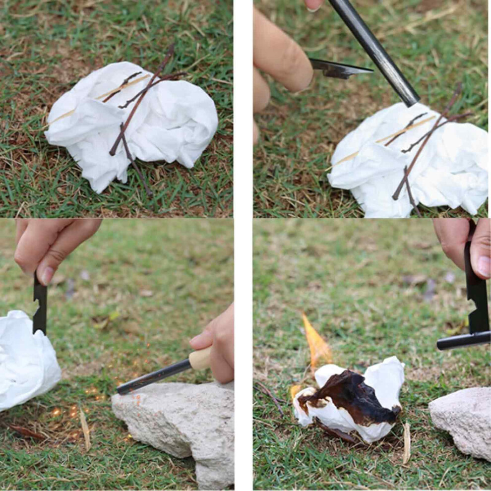 Outdoor Flint Starter Carbon Steel Fire Striker Kit Primitive Fire Starter Camping Fire Starter Survival Tool