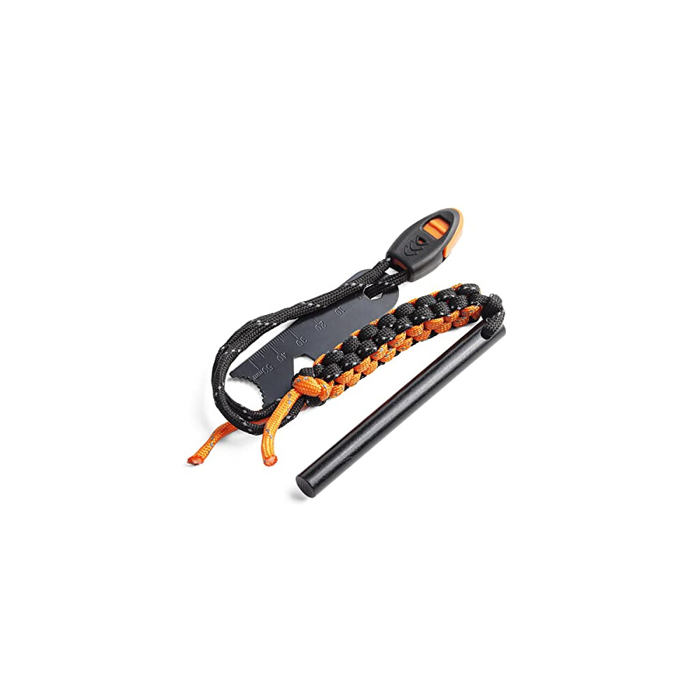 Firesteel Fire Starter, Magnesium Survival Flint and Steel Kit, Flint Striker Multi Tool & Paracord Lanyard & Emergency Whistle 10000 Strikes, for