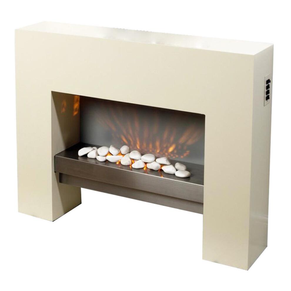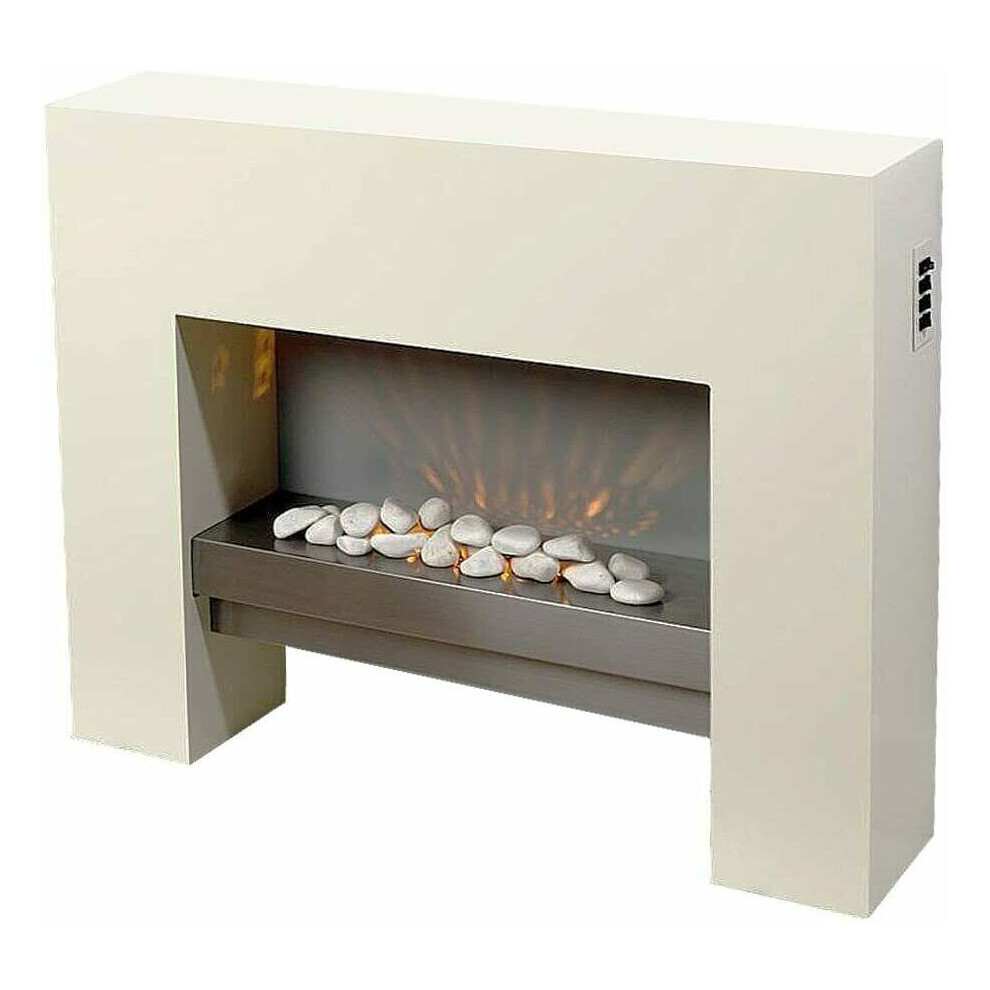 Free Standing Electric Fire MDF Cream Surround Fireplace Flicker Living Flame