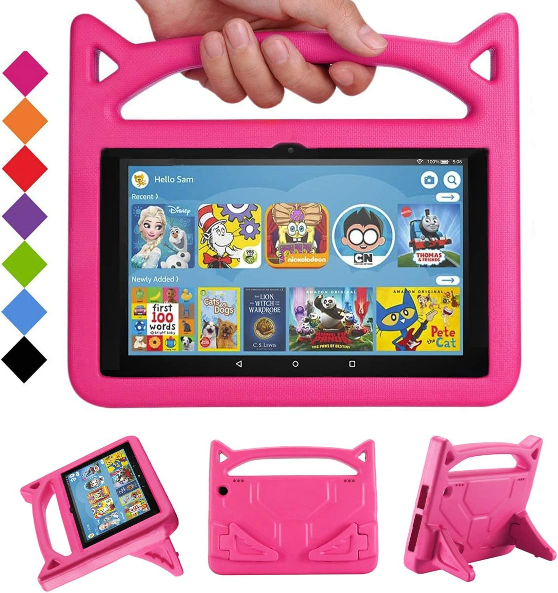 Pink Handle-Friendly Fire HD 8 Tablet Case with Shockproof Protection for Kids