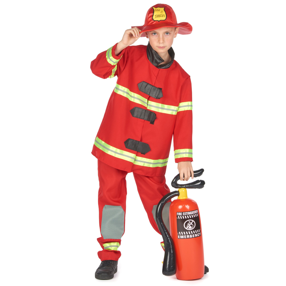 Little Bambino Children's Firefighter Costume Set, Red Fireman Fancy Dress Outfit with Pretend Play Accessories, Helmet, Axe, Fire Extinguisher