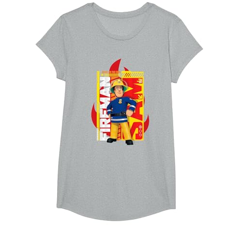 Fireman Sam T-Shirt, Official, Fire, Multiple Colours T-Shirt, Girls, Heather Grey, Large