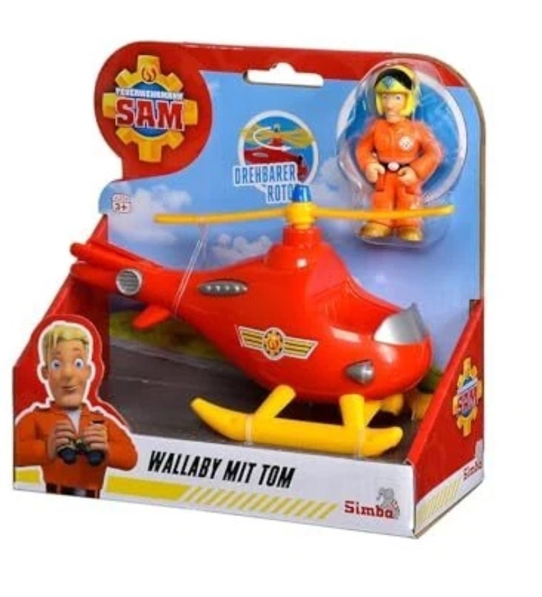 Simba 109252507 Fireman Sam Wallaby, Childlike Version with Tom Thomas Figure 7 cm, Helicopter 17 cm, from 3 Years