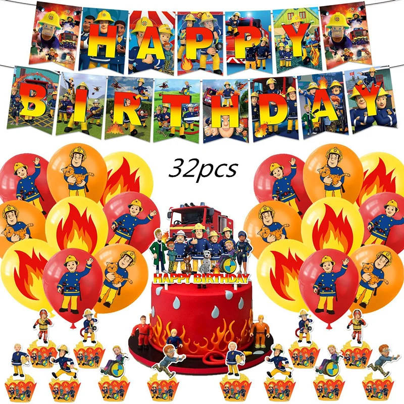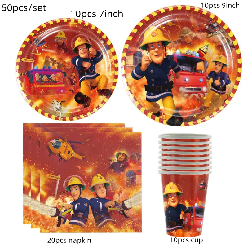 Fireman Sam Party Tableware Set Plates Cups Balloons Boy Birthday Decor UK POST