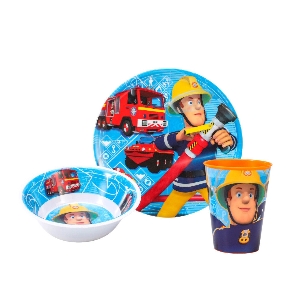 Fireman Sam Kids Childrens BPA Free 3pcs Set Plate, Bowl & Cup
