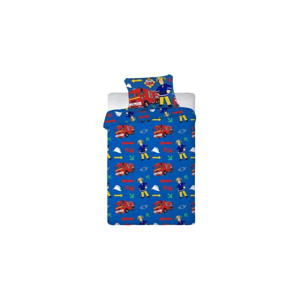 Fireman Sam Firefighter Single Duvet Cover Set Kids Boys Blue Bedding Official