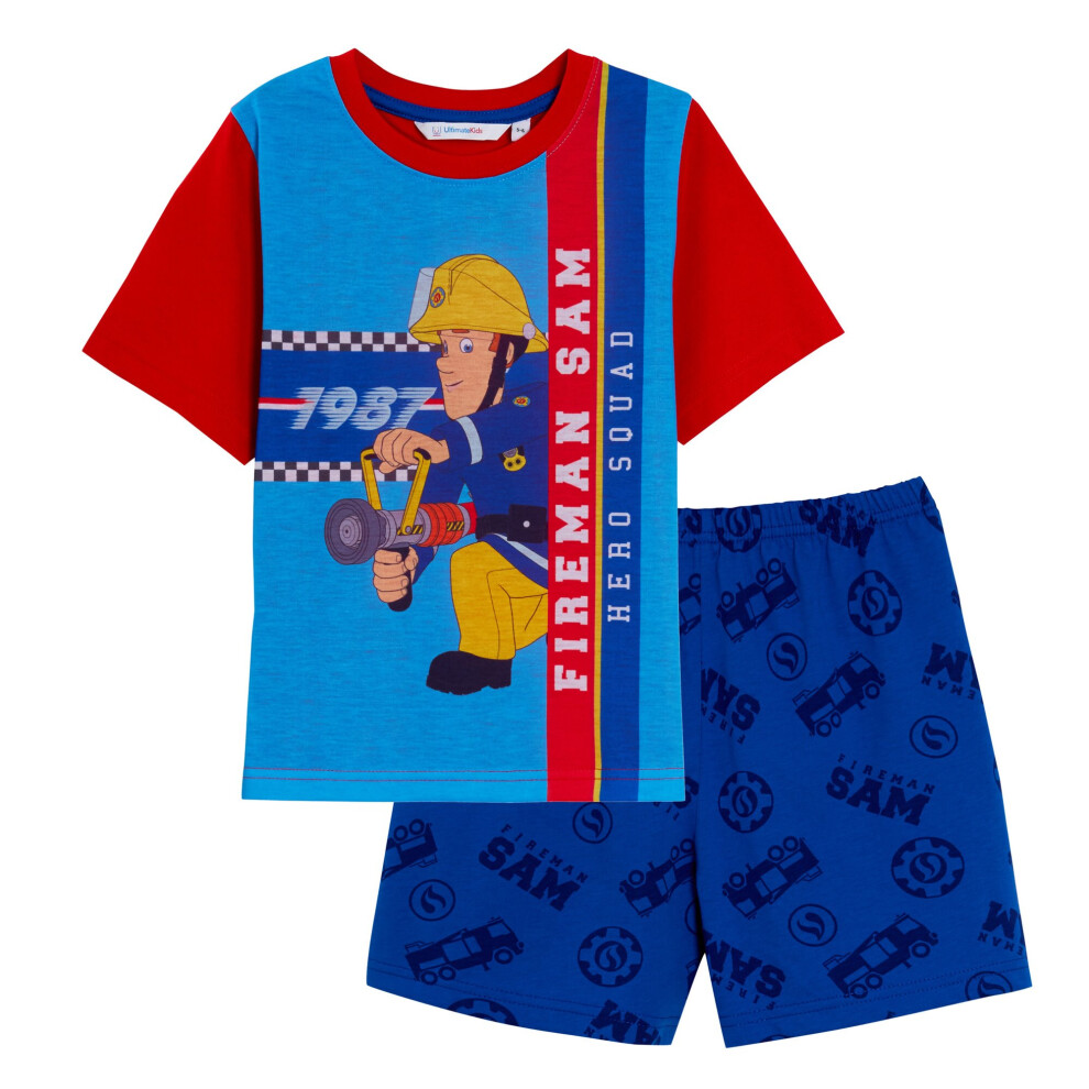 (4-5 Years) Fireman Sam Boys Short Pyjamas Kids Fire Man Shortie Pjs For Boys Nightwear Set