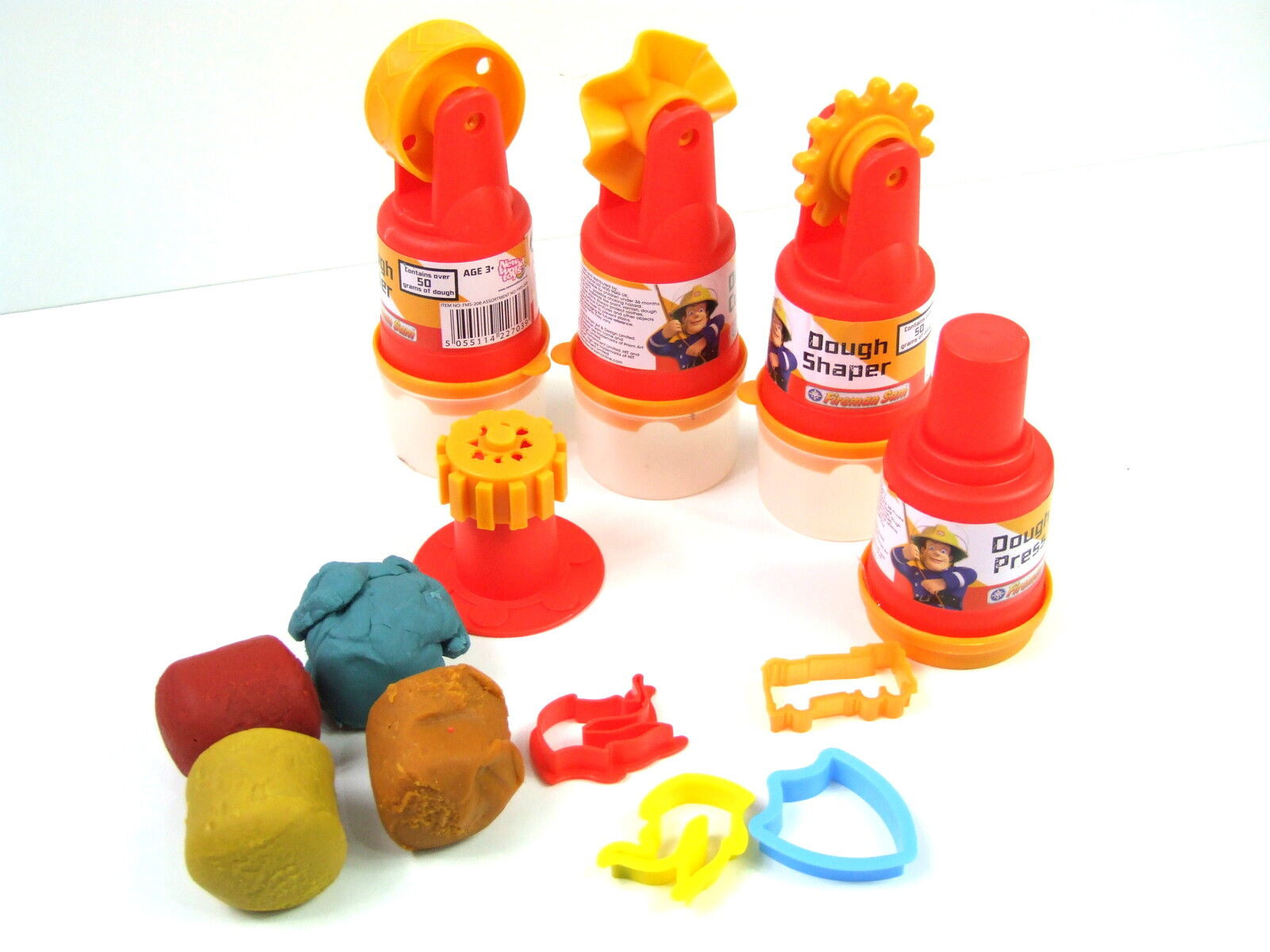 4pc Set Fireman Sam Dough Doh Tubs Shapes Shaper Cutter Roller Press Tool