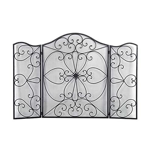 erkebspm Fireplace Screens Fireplace Screen Iron Heavy Duty Free Standing 3-Panel Foldable Guard Fireplace Screen Flat Fireplace Screens Decorative