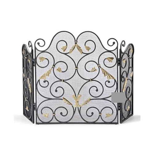 HGJHJJHK Fireplace Screen 3 Panel Wrought Iron Fireplace Screen Leaves Wrought Iron Decoration Fireplace Screen Spark Guard for Fireplace Accessories Spark Guard Cover (Color : B) small gift