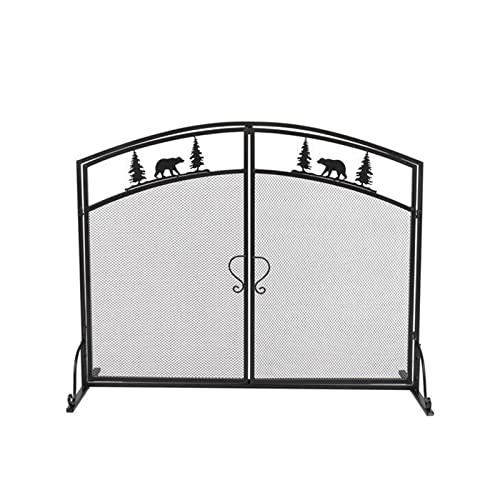 AISNXOQI Fire Guard Fireplace Screen, Large Steel Mesh Fireplace Sreen with Doors, Solid Wrought Iron Metal Fire Place Panels, Fire Spark Guard Grate for Living Room