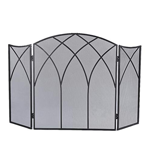 HGJHJJHK Fireplace Screen Fireplace Screen With Arch Frame 3 Panels, Iron Mesh Simple Design Fireplace Screen Spark Guard Cover (Color : B) (Noir) small gift