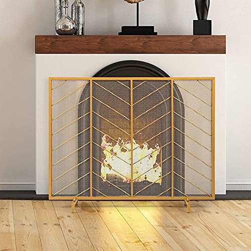 AISNXOQI Fireplace guard Indoor Fireplace Flat Screen Gold, 31inch Tall Spark Guard Single Panel Wrought Iron Large Screen Safety Fire Place Fence