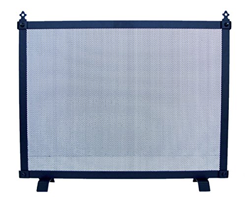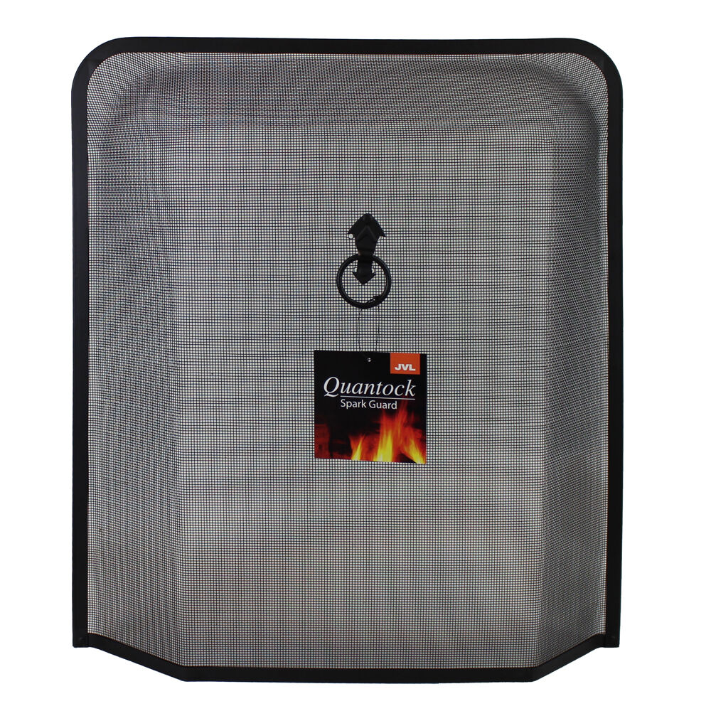 JVL Black Quality Iron Vintage Mesh Fireplace Fire Spark Guard with Handle