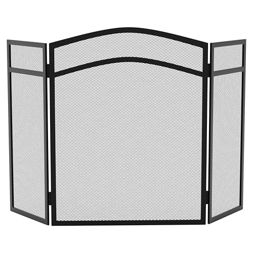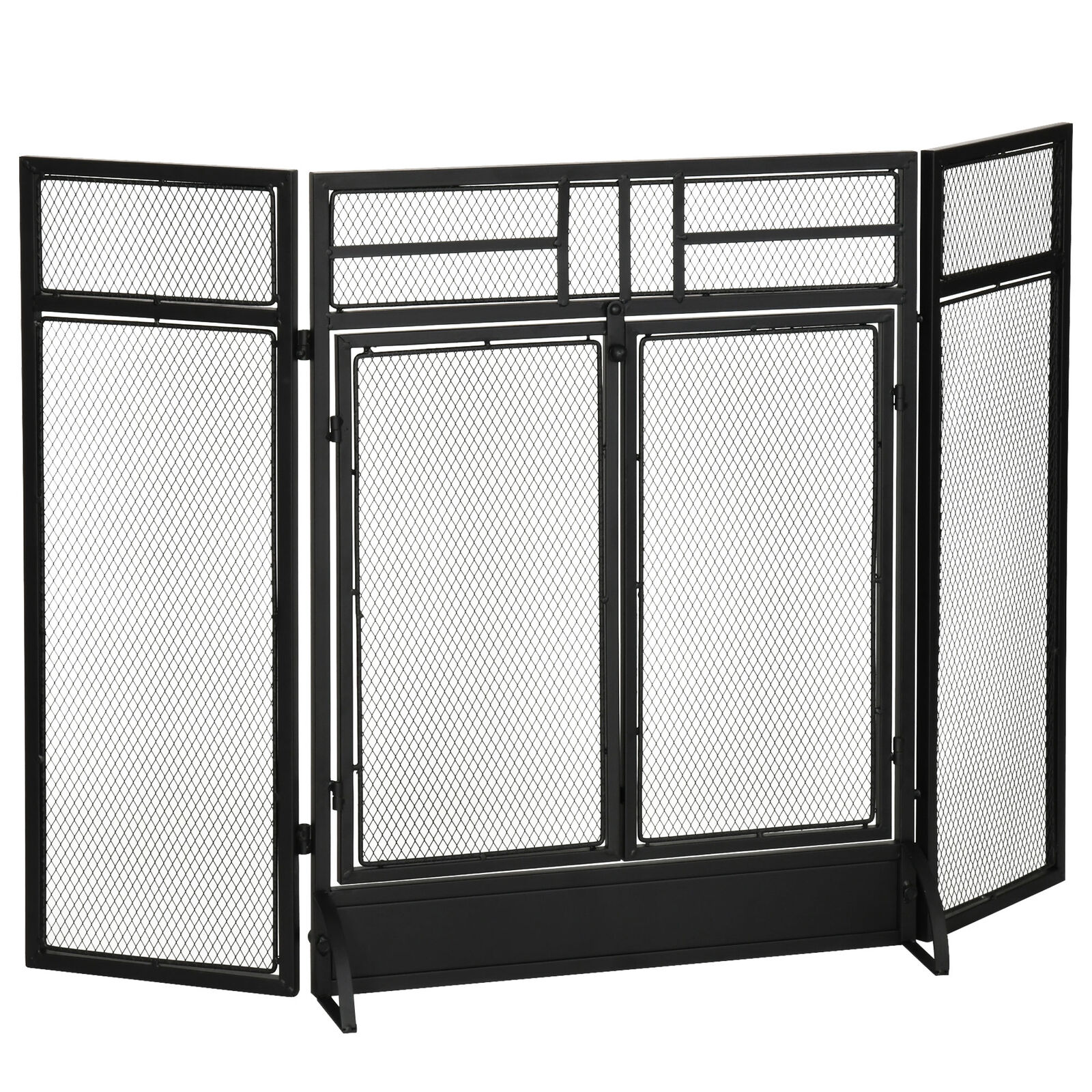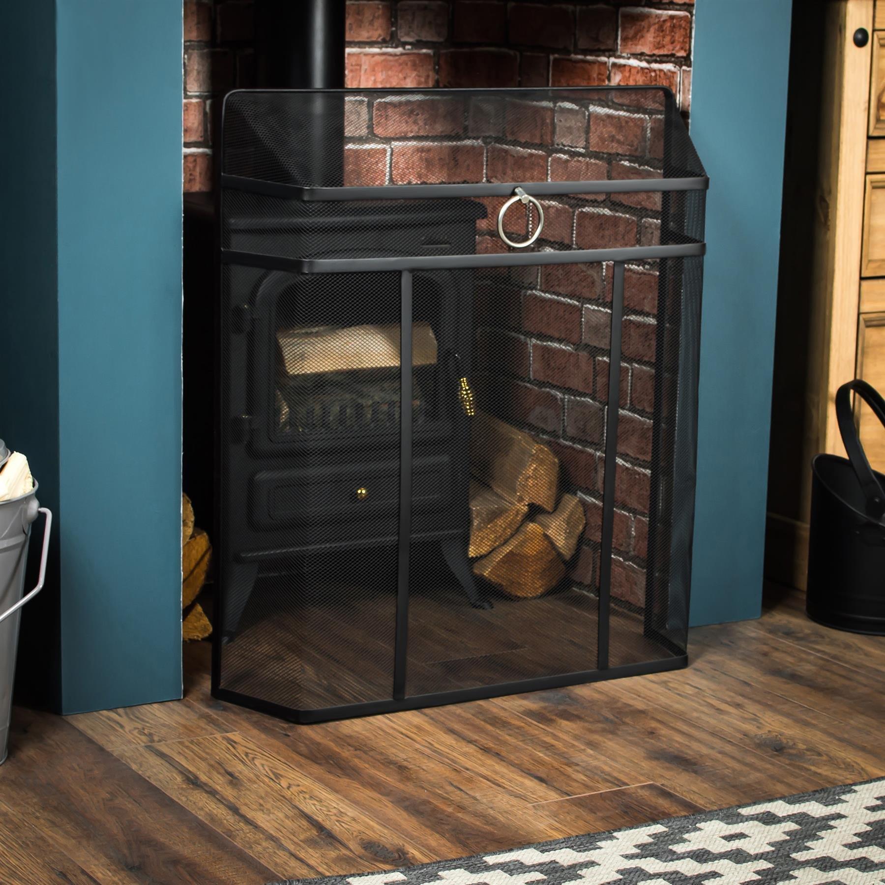 3-Panel Folding Fireplace Screen Spark Guard Metal Mesh Fireguard | Black
