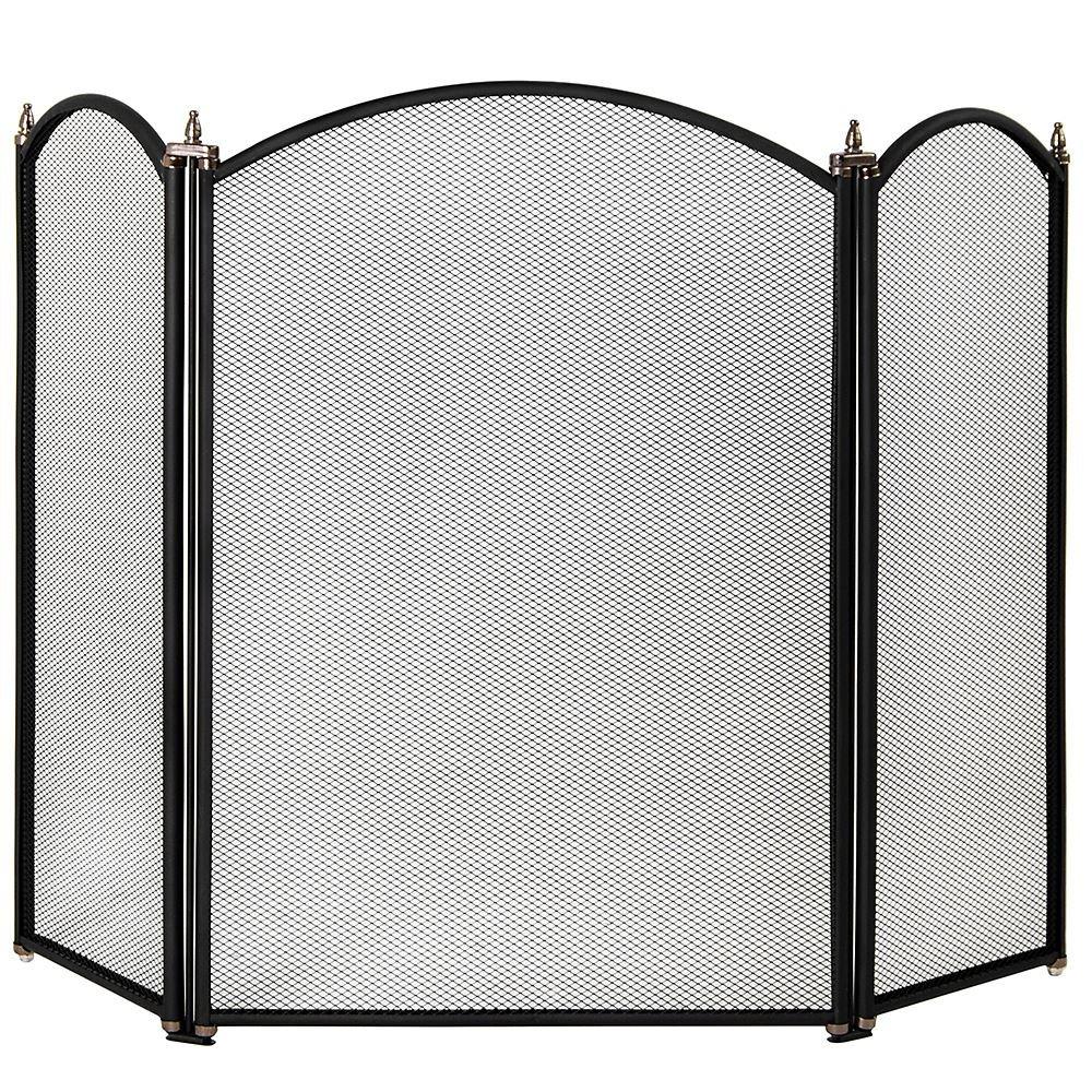 NEW BLACK STEEL 3 PANEL FIRE SCREEN FOLDING MESH SPARK GUARD FIREPLACE COAL WOOD