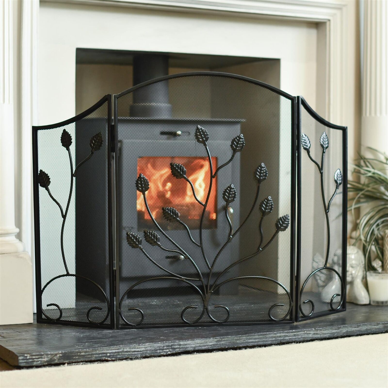 "Ivelen Lane" Leaf Design Black Fire Guard Fireplace Spark Screen