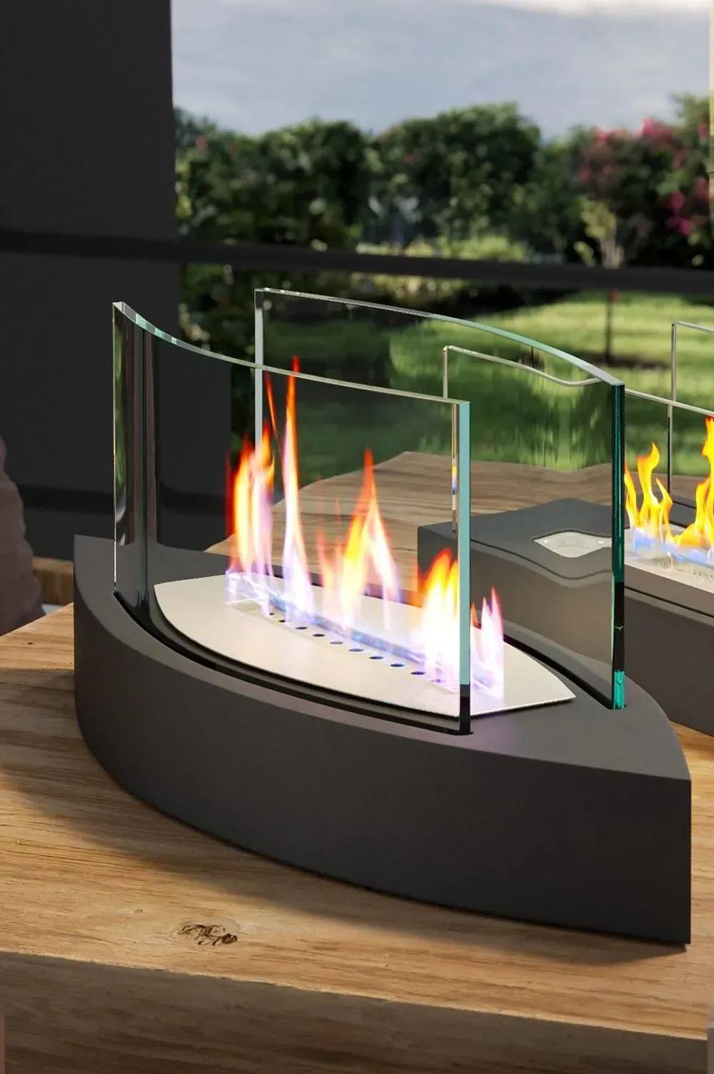 Living and Home Bio-Ethanol Tabletop Fireplace with Flame Guard in Black