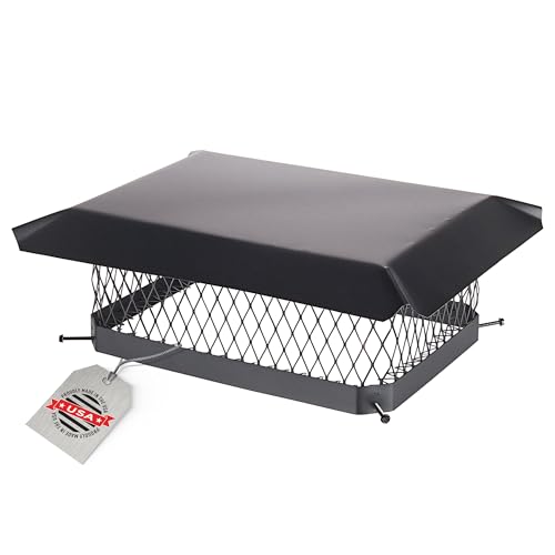 HY-GUARD Galvanized Steel Chimney Cover - HY-C Black Chimney Cap, Single Bolt-On Chimney Fireplace Cover, Chimney Flue Cover To Fit On Existing Flue Tiles, Chimney Vent Cap With Hood Plate (13" x 18")