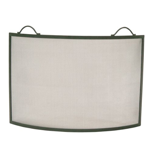 Kamino-Flam Curved Fireplace Spark Guard with Top Handles, Powder-Coated Iron Fire Screen with Stainless Steel Grid, Single Panel Fireguard for Stove, Surround Screen, Approx. 81.5x0.5x61.5cm, Grey