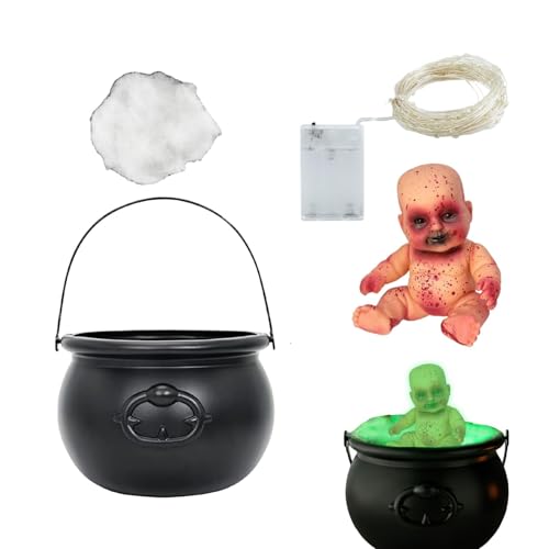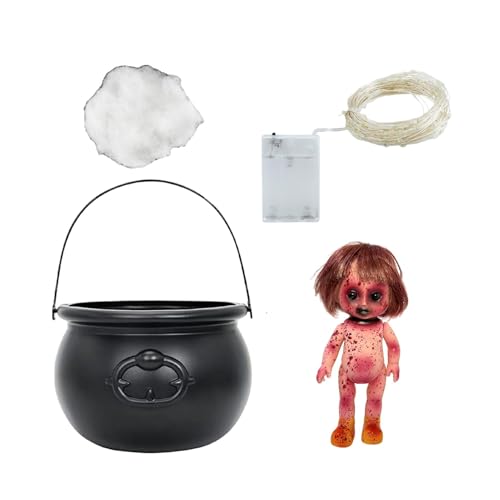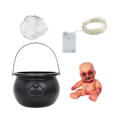 scyca Halloween Cauldron Decoration,Witch Cauldron Pots,Halloween Black Cauldron Pots with LED Lights | Scary Atmosphere Decoration Tool for Fireplace, Party