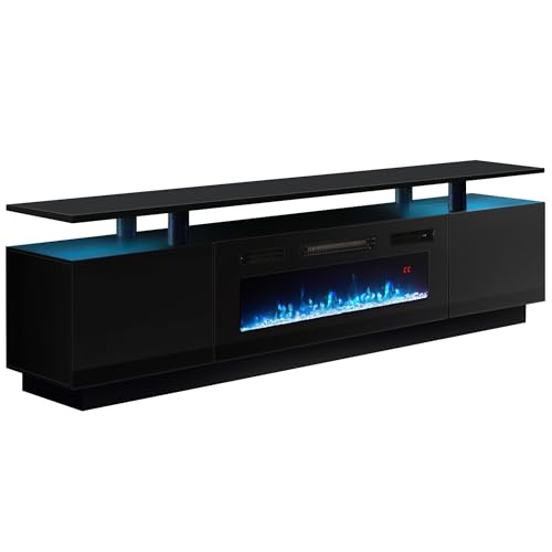 INMOZATA Electric Fire Insert TV Stand, Entertainment Center Console Table with 36" Fireplace, for 78" TV, with 12Colors Realistic Flame Effect & 12Colors Moon Lights, Overheat Protection, Black