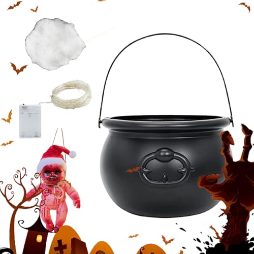 scyca Halloween Cauldron with Lights, Witches Black Cauldron - Halloween Black Cauldron Pots with LED Lights, Scary Atmosphere Decoration Tool for Fireplace, Halloween Party,