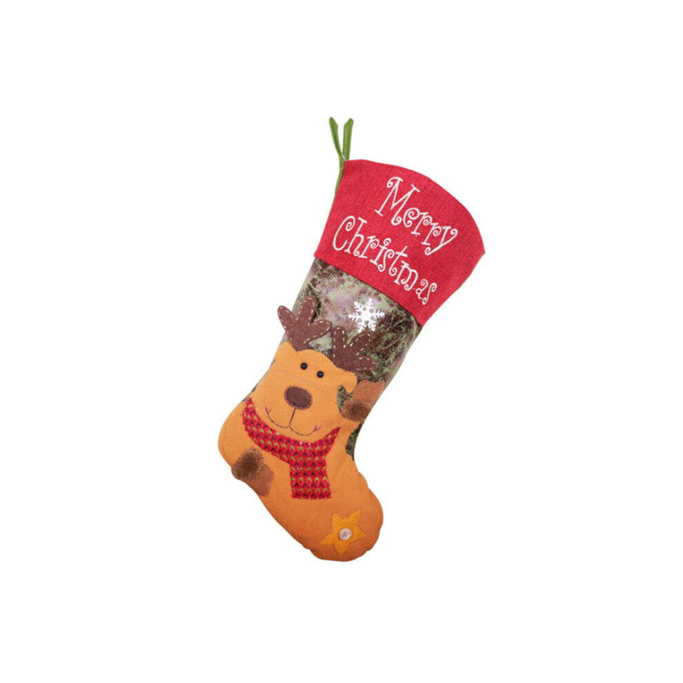 Dsport C323 Christmas Elk Socks Gift Bag Christmas Fireplace Pendant with Lights Christmas Candy Gift Bag for Christmas Party