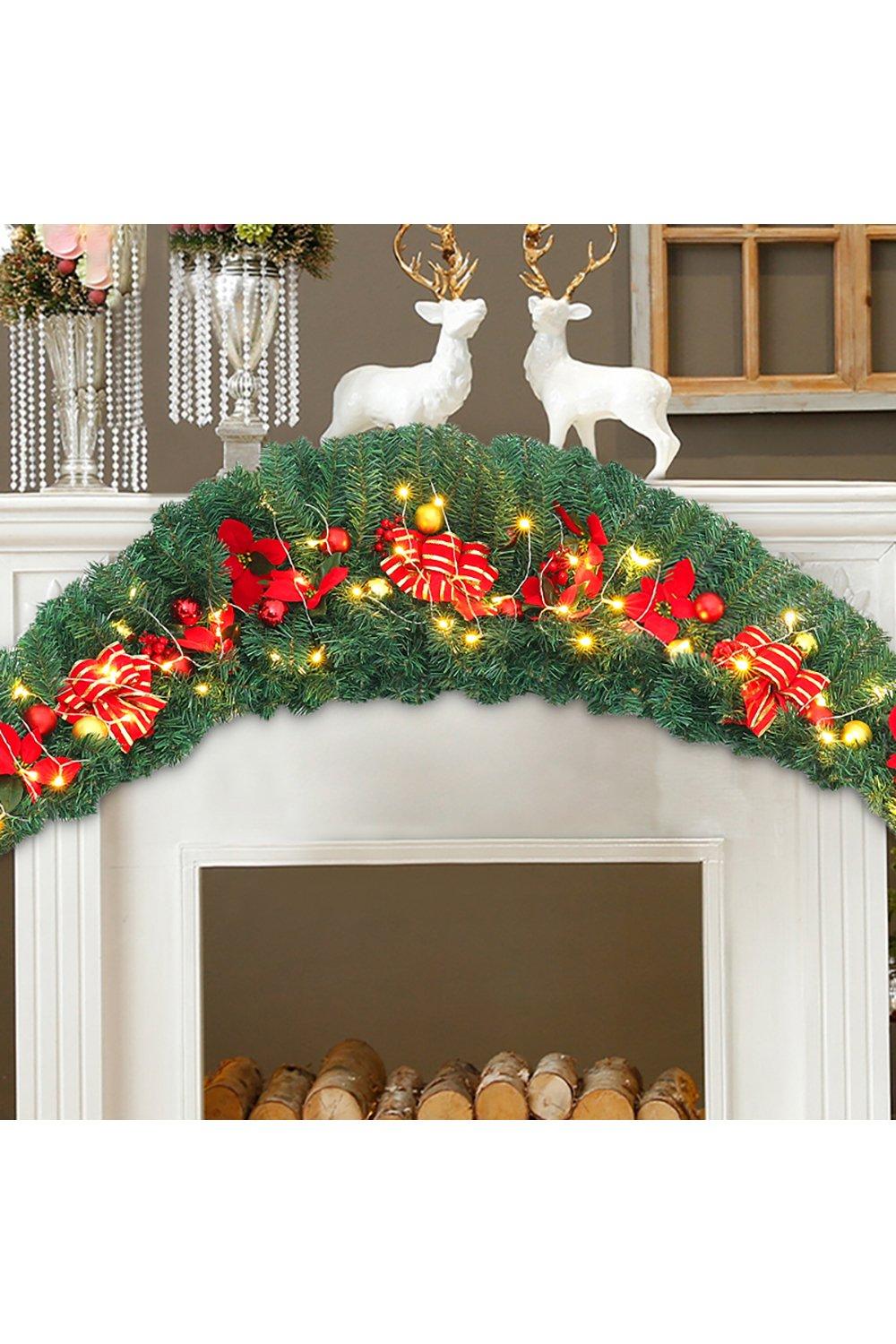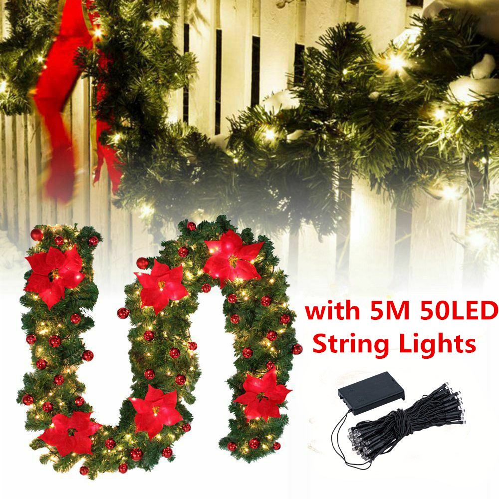 2.7M Christmas Garland with Lights Door Wreath Xmas for Stairs Fireplace