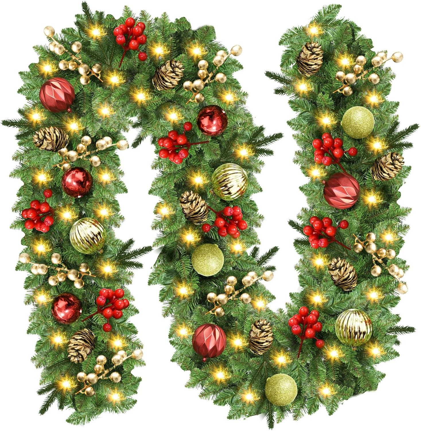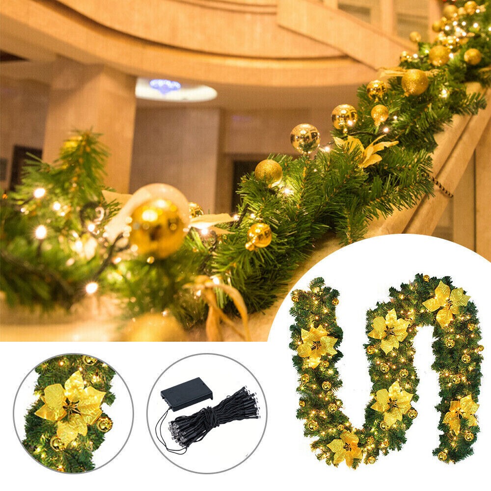 9ft Christmas Garland with Lights Fireplace Stairs Wreath DIY Gold Decorations