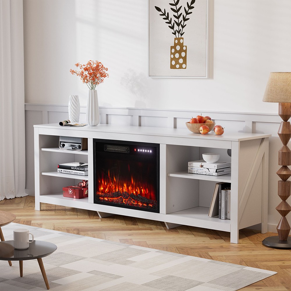 INMOZATA Electric Fire, Entertainment Center Console Table with Fireplace, 12Colors Realistic Flame Effect & 12Colors Moon Lights, Remote Control&Overheat Protection, 36" Fireplace, for 78" TV, White