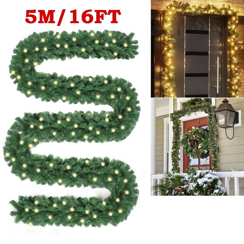 9ft 16ft Christmas Garland With Lights Fireplace Artificial Wreath Bushy Pine UK