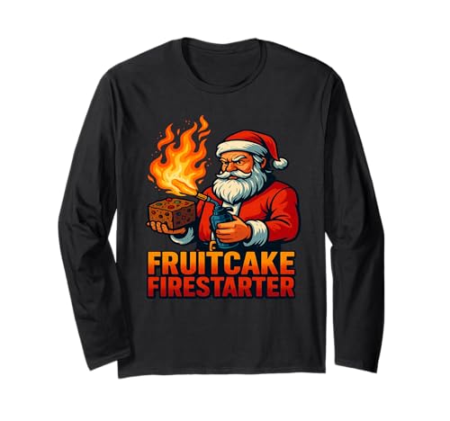 Fruitcake Firestarter Santa Baking Parody Fiery Holiday Long Sleeve T-Shirt