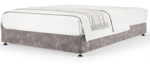 BED TIME UK - Luxe Plush Divan Bed Set | Premium Bed Frame with Spring Memory Foam Mattress & Stylish 20" Vertical Liner Headboard | 2-Drawer Storage (Silver, 6FT Super King Size Bed)