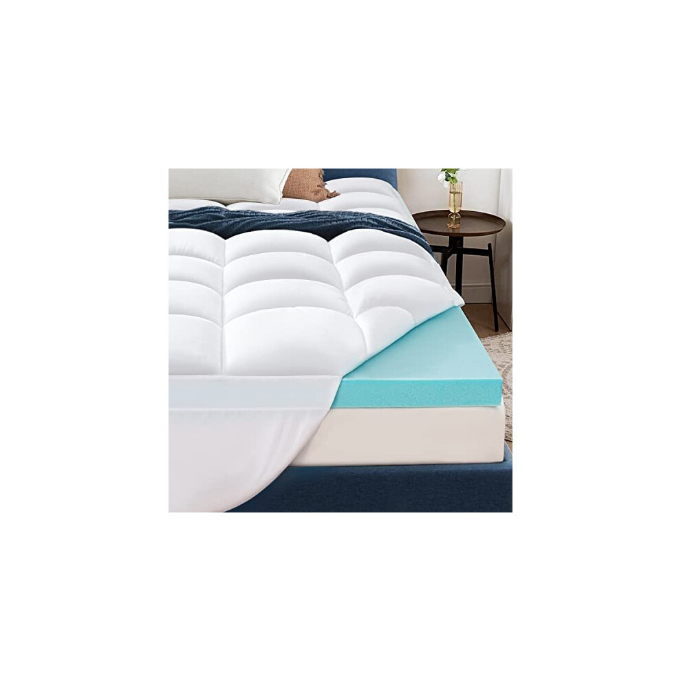 Elemuse Dual-Layer Memory Foam Mattress Topper Double Bed for Back Pain - Cooling Mattress Topper with Washable Mattress Cover, Firm Mattress Top