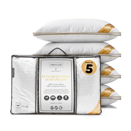 GC GAVENO CAVAILIA Hungarian Goose Down Pillow | Hypoallergenic Medium Neck Support Firm Pillow for Front & Back Side Sleeping With 100% Cotton Cover Bed | Pack of 5, 48x74 Cm